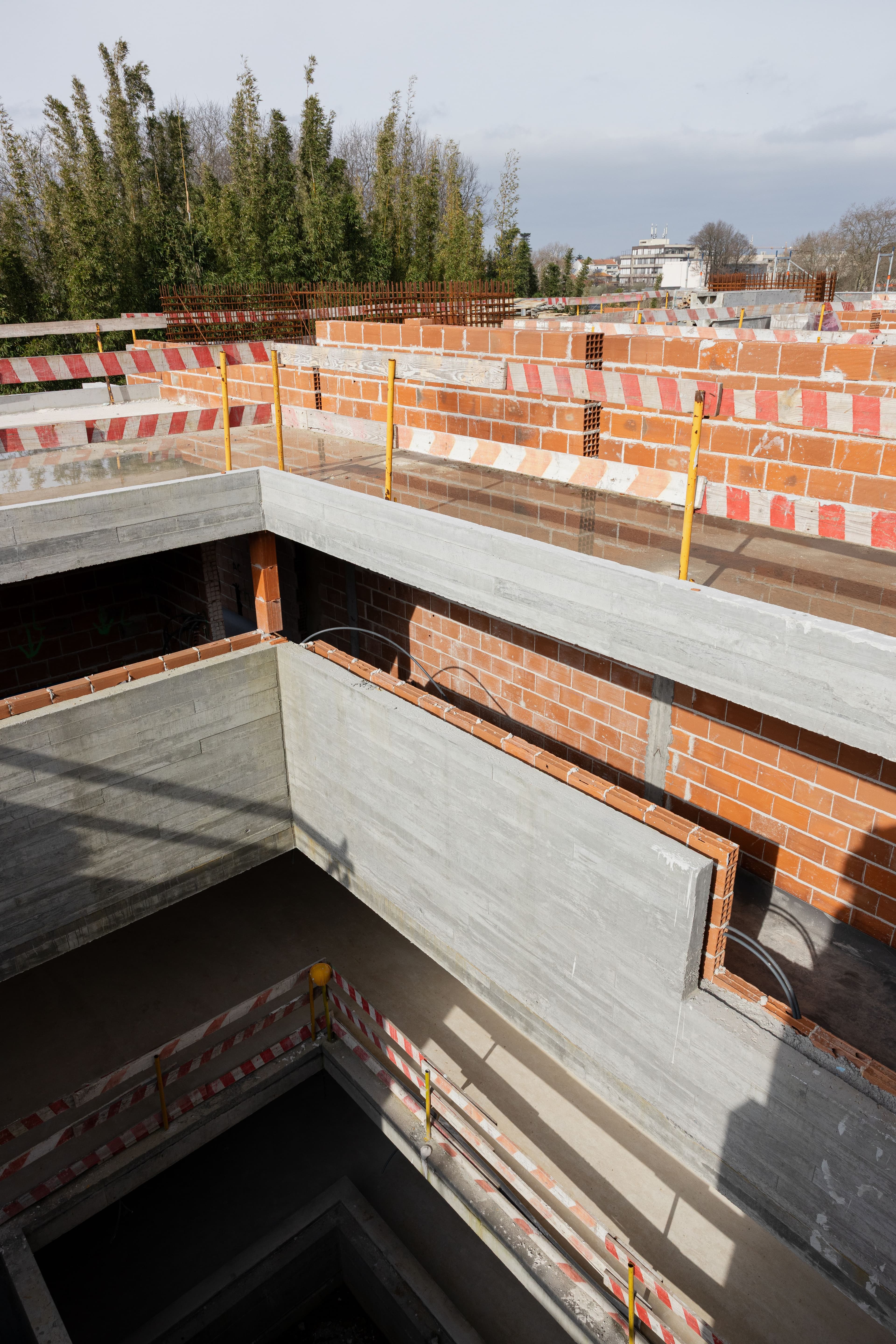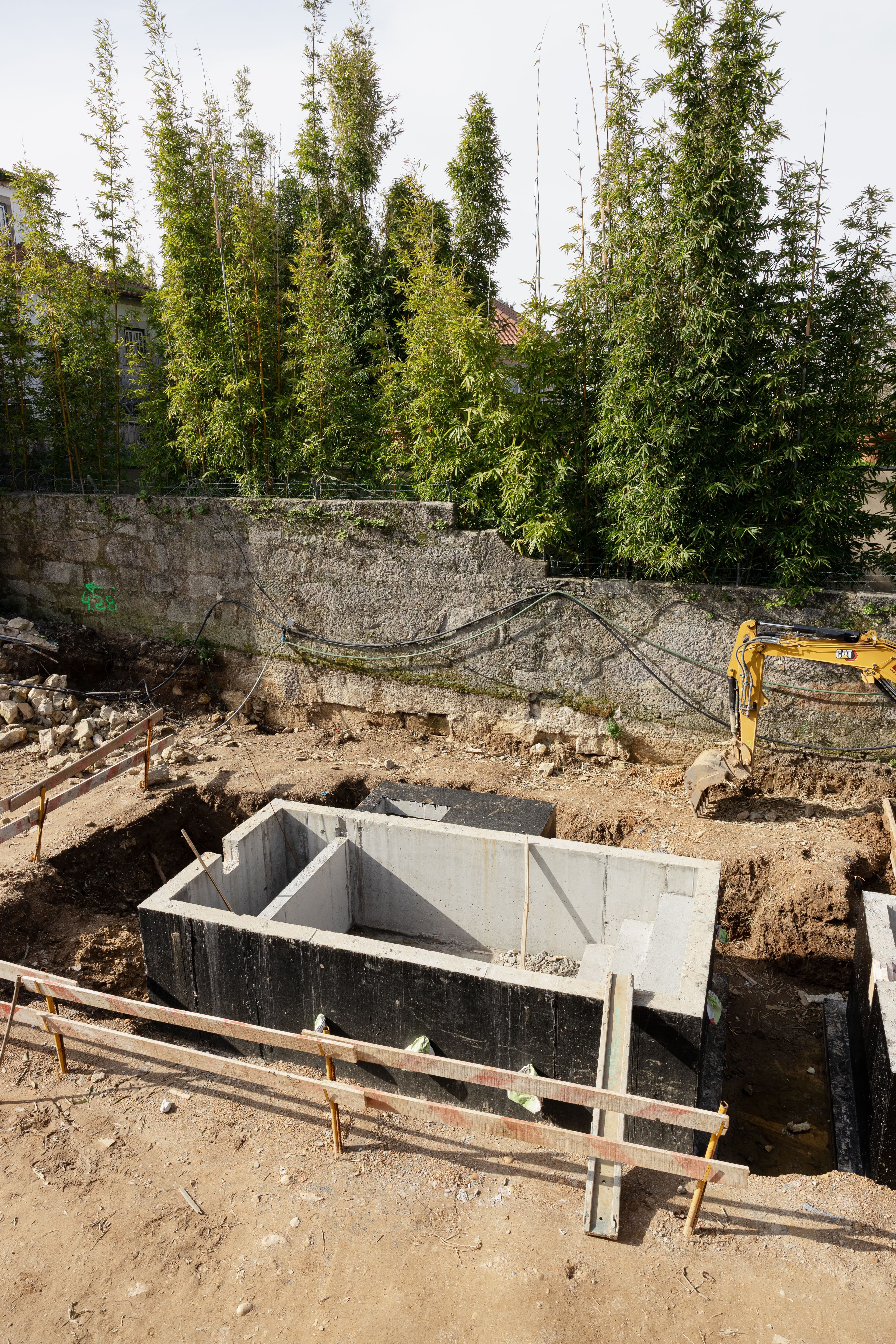 Entre jardins, pátios, espaços comuns, atravessamentos, procurou-se desenhar um conjunto de casas que procuram a sua autonomia dentro da continuidade de um espaço aberto, arborizado e tratado paisagisticamente.\nTodo o cuidado é pouco no redesenho desta circunstância. A nossa esperança é que os materiais se diluam neste contexto e lhe tragam a dignidade das construções correntes antigas contíguas, … e que o tempo permita que os edifícios e a sua arborização se fundam entre si e na envolvente próxima natural.